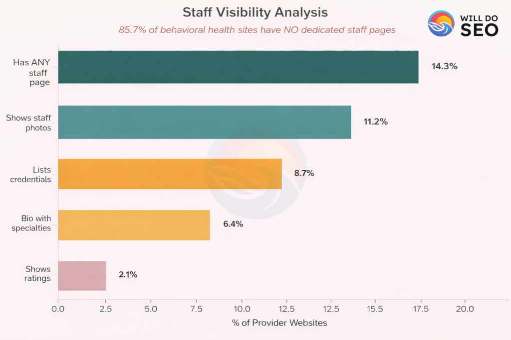 85.7% of competitors have no staff pages. Patients want to know who will treat them. Providing this builds trust before the first conversation.