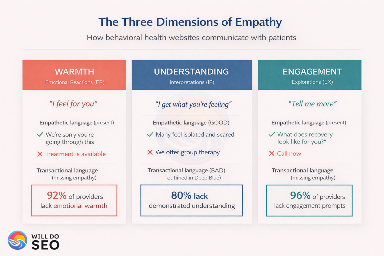 92% of behavioral health pages show no emotional warmth.