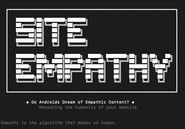 Site Empathy Analysis crawls your website and scores each page for empathic language using a peer-reviewed framework (Sharma et al., 2020). You get a CSV report with page-by-page scores and specific phrases flagged as empathic or non-empathic.